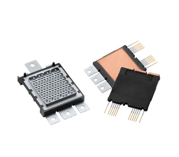 The new modular power platform, based on Silicon Carbide MOSFETs, has been designed for automotive and industrial electrical motor drives. This new platform enables high power density converters, giving access to the full benefits of SiC technology, thanks to operation at high junction temperatures (up to 175°C) and low switching losses.